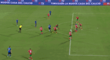 上半场比赛第8分钟,若日尼奥分球,因西涅远射攻门被挡出。第11分钟,因西涅接队友斜传后内切到禁区横敲分球,皮球被防守球员挡了一下后因西涅跟上完成一脚小角度攻门偏出底线。第15分钟,小基耶萨右路拿球内切到弧顶,和因莫比莱撞墙式配合后小基耶萨劲射破门,意大利1-0领先。