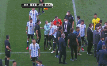 巴西卫生监督局官员带着数十名便衣警察闯入球场,随即一名官员准备把场上正在比赛的罗梅罗和马丁内斯两名阿根廷球员带离球场,而他随即和奥塔门迪、阿库尼亚两名阿根廷国脚发生了肢体冲突。随后阿根廷球员们和教练聚集在一起,和巴西卫生监督局人员发生了混战,并且愤然离场。