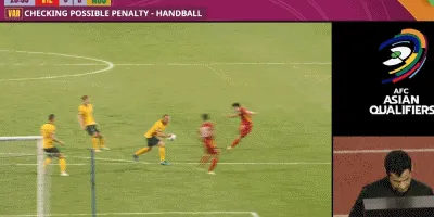 第28分钟,阮峰鸿维禁区前沿左路接应队友的传球,顺势起脚抽射,球打在瑞安-格兰特的手上弹出,随后阮峰鸿维跟进起脚补射,球再次被澳大利亚球员挡出边线。经过VAR提醒后,主裁判到场边观看视频回放,确认瑞安-格兰特没有手球犯规。