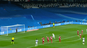 第24分钟,皇马长传球,巴尔韦德在禁区右侧回敲,本泽马踢出弹地球射门,足球击中横梁后飞进球门,皇马1-1!