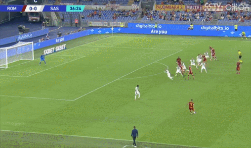 第38分钟,亚伯拉罕在前场赢得任意球机会,佩莱格里尼开出战术任意球,直接地滚球把球送到禁区,克里斯坦特高速插上,一脚低射把球打进网窝,1-0,罗马主场领先。上半场比赛结束,罗马主场1-0领先萨索洛。