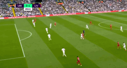 比赛的第20分钟,阿诺德前场右路传中。禁区中路,萨拉赫快速的拍马赶到,他甩开了防守球员。慢镜头显示,阿诺德传中的一刹那,萨拉赫正好不越位,他的身边有4个后卫,但没有一人能盯住他。反越位成功后,萨拉赫包抄得手,轻松推射破门,1-0。