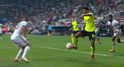在上半场结束前,多特蒙德获得前场左侧界外球机会。界外球掷出后,贝林厄姆禁区左肋左晃右突过掉后卫,随后倒三角把球传到中路,跟进的哈兰德准确把球打进网窝,0-2。
