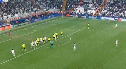 下半场伤停补时第3分钟,贝西克塔斯获得前场任意球机会,皮亚尼奇任意球吊入禁区,蒙特罗禁区内头球鱼跃冲顶,皮球钻进网窝,1-2,贝西克塔斯终场前扳回一城。