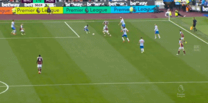 第30分钟,鲍文传球,本拉赫马罚球弧前右脚射门,球碰瓦拉内折射入网,曼联0-1西汉姆。
