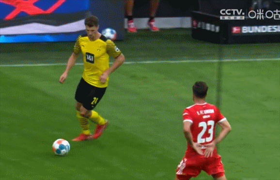 第23分钟,多特蒙德再次取得进球,2-0。皮球转移到右路后,默尼耶送出高质量传中,中路跟进的哈兰德高高跃起,狠狠把球砸进网窝,这是一个标准的边路传中暴力头球破门。这是哈兰德本赛季的第6粒德甲进球。