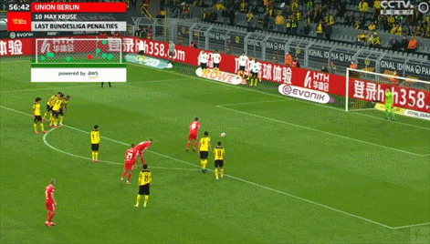 比赛进行到第57分钟,维特塞尔在禁区内防守踩倒了对手刚刚登场的球员贝**伦斯,多特蒙德被判罚点球。柏林联合当家射手克鲁泽站在点球点前,一脚推射把球打进球门左下角,3-1,客场作战的柏林联合扳回一城。**