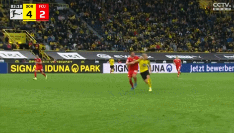 第83分钟,哈兰德梅开二度,多特蒙德4-2领先。胡梅尔斯在后场大脚长传,哈兰德前场左路抗住对方后卫尝试了一脚吊射,皮球越过出击的门将,准确掉进了柏林联合球门死角。最终多特蒙德主场4-2击败柏林联合。