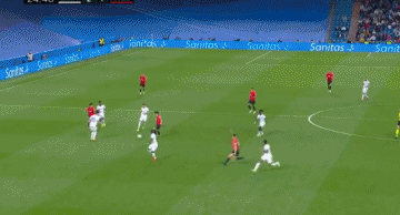 比赛第25分钟,李刚仁在前场接到队友霍普的传球,他先是带球晃过了试图铲球的米利唐,随后面对阿拉巴、卡马文加、纳乔的三人包夹防守,李刚仁选择在禁区弧顶处起脚远射,足球直接飞进球门死角,皇马门将库尔图瓦全力飞身扑救但依然没能碰到球。