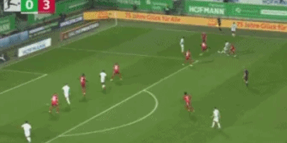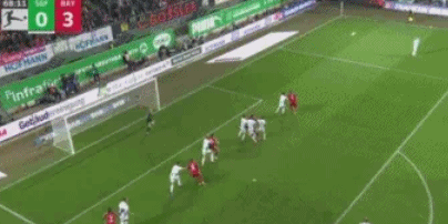 第68分钟,基米希右侧任意球传入禁区,在莱万的紧逼下,格列斯贝克将球踢入自家球门,0-3!