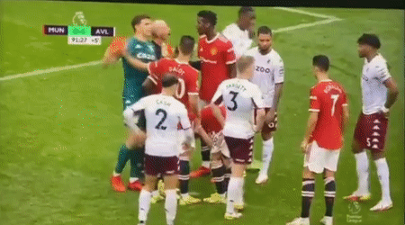 比赛的第88分钟,曼联丢球。第91分钟,曼联拿到点球。打进这个点球,曼联就可以扳平比分。谁来主罚这个球呢?B费拿起了皮球,准备去罚。看来,这是索尔斯克亚赛前安排好的,虽然C罗回归了球队,但索帅并没有让B费让出第一点球手的权利。