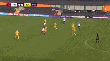 唐佳丽随即随球转身,她右脚将球停稳之后,立刻送出了一次非常精彩的挑传。皮球从后卫脸边飞过,进入雷丁禁区右侧。杰西卡-纳兹后插上冲刺而来,她面对门将铲射破门。