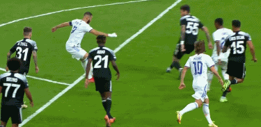 比赛第62分钟,维尼修斯左路带球突破到禁区内,被谢里夫球员阿多犯规放倒,主裁判随后判罚点球。本泽马主罚点球,尽管谢里夫门将阿塔纳西亚迪斯判断对了方向,但本泽马踢出的点球直奔球门死角,帮助皇马1-1扳平比分。