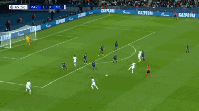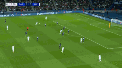 为了弥补中场抢点能力的不足,双方都安排了中场的前提。巴黎这边负责来到禁区填补进攻空间的是盖耶,曼城这边是B席。最终结果就是盖耶与B席都获得了绝佳的得分机会,但进球的只有巴黎。