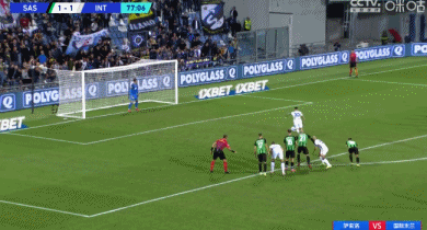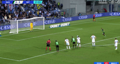 第21分钟,博加禁区左侧带球内切被什克里尼亚尔绊倒,主裁判判罚点球。贝拉尔迪主罚点球命中,萨索洛1-0领先。