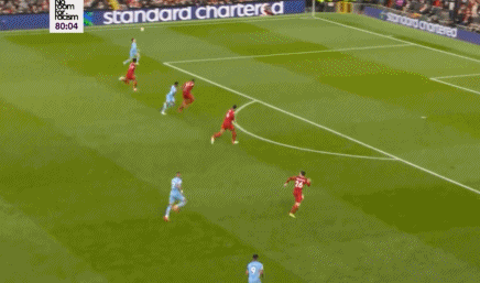 第76分钟,场上比分再度被改写,法比尼奥右路分球,萨拉赫得球连续摆脱带球杀入禁区右侧,利用个人能力强突曼城防线小角度右脚搓射入网,利物浦再度领先,2-1!