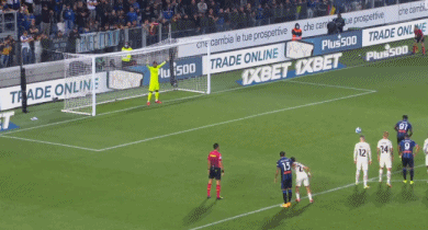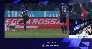 第84分钟,扎帕科斯塔抽射攻门,皮球击中倒地封堵的梅西亚斯的手臂,主裁判亲自到场边确认VAR后判罚点球,杜万-萨帕塔主罚点球命中,为亚特兰大扳回一球,1-3。