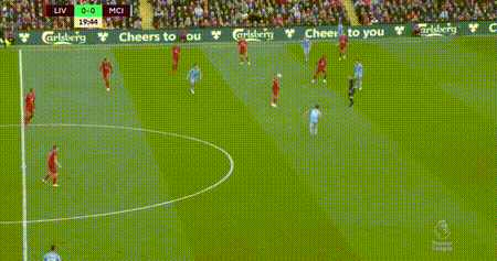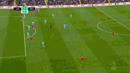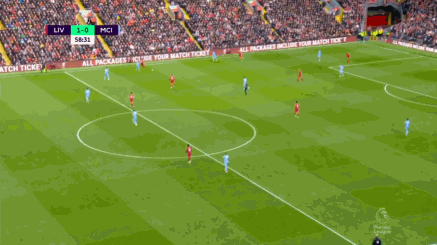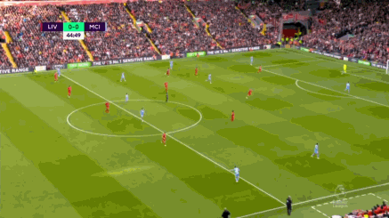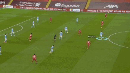 应对利物浦的高位逼抢,尤其是在亨德森前提幅度较大的情况下,埃德松发挥了他的长传优势。直接长传身后,福登冲到身后获得单刀机会,可惜被出击的阿利森化解。