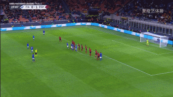 仅仅3分钟后,加维又完成了一次高质量防守。意大利战术任意球直塞禁区左侧,此时只有加维这一名西班牙球员有所预判。在巴雷拉前插的同时,加维也向着皮球落点瞬间加速,并抢在巴雷拉之前拿到了球权。主裁吹了巴雷拉对加维的背后犯规,博努奇抗议吃到一张黄牌,这也为意大利中卫的红牌而埋下伏笔。
