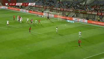 第25分钟,C罗在禁区中路得到达洛特的传中球,头球攻门,顶的比较正,被对方门将轻松没收。第29分钟,马里奥主罚禁区右侧任意球,传中到禁区内右侧,C罗凌空抽射,但是没有踢到皮球。第34分钟,达洛特中场右侧的斜传球给到禁区附近,C罗得球后获得一次单刀机会,面对门将的抽射,皮球擦着左侧立柱飞出球门,葡萄牙失去一次绝佳得分机会。第38分钟,努内斯禁区前偏左侧传中到禁区内右侧,达洛特头球回做到禁区中路,防守球员解围失误,C罗得球后轻松破门,葡萄牙1-0领先卡塔尔。