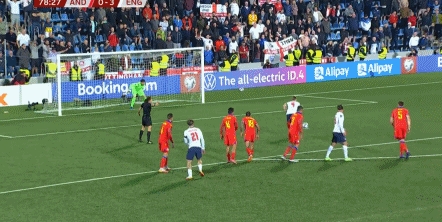 第42分钟,斯通斯和马丁内斯争抢球后发生冲突,两人都领到黄牌。补时第1分钟,安道尔准备快发任意球,桑乔踢走球领到黄牌。上半场结束,英格兰2-0安道尔。