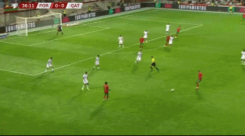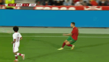 C罗受到了卡塔尔的严密防守,因此射门机会并不多。第25分钟,C罗接到队友的边路传中禁区内头球攻门,但是在对方的干扰下没有顶上力量,被对方门将轻松没收。第29分钟,C罗在禁区内凌空抽射,但是没有踢到皮球。比赛第34分钟,C罗得到一次单刀球的机会,但是C罗却出人意料的踢丢单刀球,C罗对此非常郁闷,直接捶地发泄。