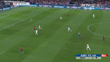 第53分钟,法国的反击机会,姆巴佩分到右路,帕瓦尔直塞,阿隆索抢在姆巴佩之前破坏。