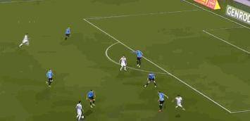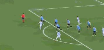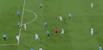 在下半场比赛中,梅西继续着自己的精彩表演,第61分钟,梅西在禁区左侧得球等待机会,梅西再持球时,乌拉圭的后防目光全部都在梅西身上,在被乌拉圭四人包夹的情况下,梅西背身稳稳控制住球,然后将球向禁区外带了几步后传给右侧无人防守的德保罗,德保罗精准传中给到劳塔罗破门,3-0,这是一次行云流水般的进攻。