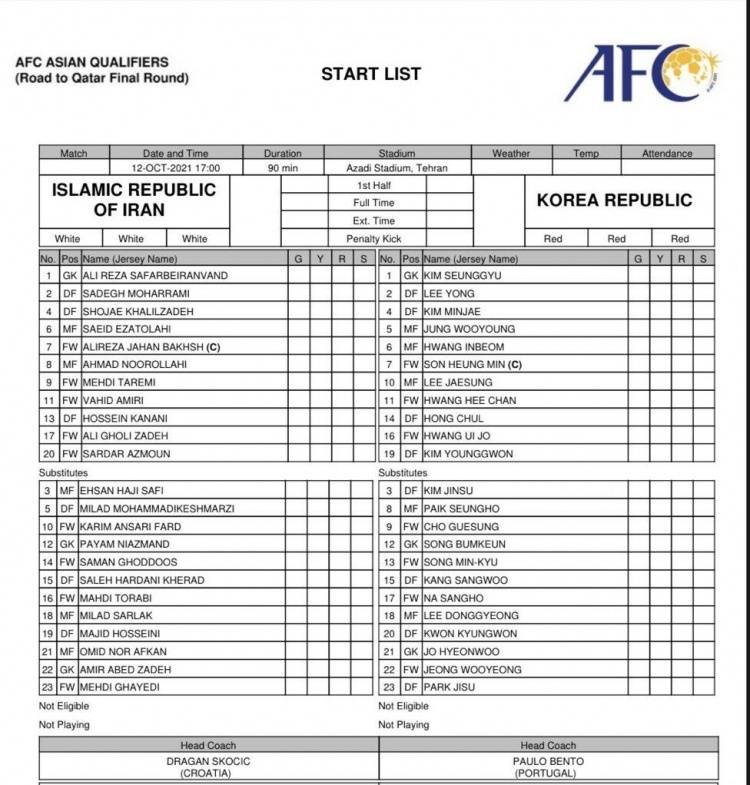 唯彩看球讯 12强赛A组伊朗对阵韩国,赛前首发出炉。