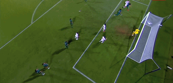 慢镜头显示,皮球似乎进了!整体已经越过门线,阿联酋应该是3-2绝杀带走3分。然而,裁判没有表示,认为皮球没有过线,认定伊拉克门将是有效扑救,所以绝杀不算,双方2-2握手言和。