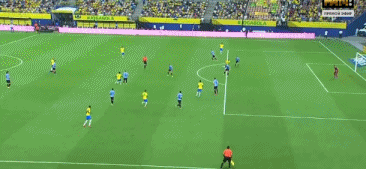 第35分钟,本坦库尔在禁区外尝试的一脚远射擦柱而出,这是乌拉圭半场最有威胁的一脚打门了。