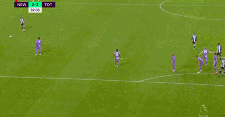第89分钟,墨菲主罚任意球吊入禁区,戴尔不慎自摆乌龙,纽卡扳回一球热刺3-2领先。第94分钟,乔林顿放倒恩东贝莱领到黄牌。最终热刺3-2取胜。
