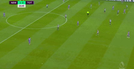 做客挑战刚刚换老板的纽卡,凯恩终于开荤了。第22分钟,赫伊别尔送出精准的长传,凯恩反越位成功,他高速的插上,在禁区里直接面对门将。面对出击的门将,凯恩选择了挑射,四两拨千斤,皮球越过了门将的头顶,钻进了球网,2-1,热刺反超了比分。