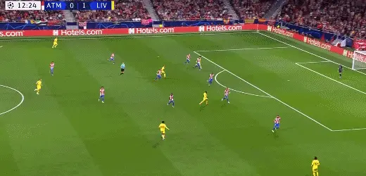 第8分钟,罗伯逊传球给萨拉赫,萨拉赫右路禁区前沿带球横切,连续晃开勒马尔、卡拉斯科和科克,在格里兹曼封堵前弧顶一脚左脚贴地抽射,球打在禁区中央米尔纳身上折射进网,但这一进球算作萨拉赫的进球,利物浦1-0。萨拉赫连续9场比赛代表利物浦进球,创造新的俱乐部纪录。