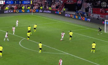 第72分钟,布林德左路传中,阿莱轻松头球破门,阿贾克斯4-0多特蒙德。