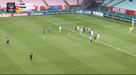 第89分钟,克维西奇右肋任意球吊入禁区后点,格兰特点球点左侧高高跃起头球攻门,球击中右侧立柱弹入球门,浦项扳平,1-1!