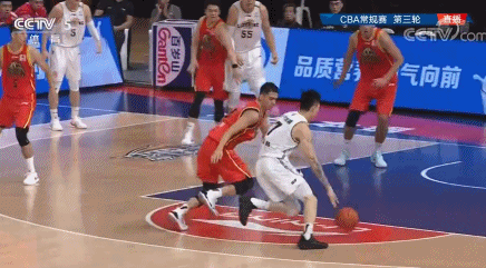 第一次扣飞发生在第二节3分45秒,张镇麟持球冲击内线,拔地而起就是一记暴扣。篮球砸在篮筐前沿,直接扣飞。