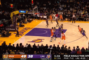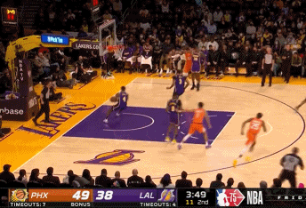 湖人牺牲空间摆双塔,目的是为防守,浓眉的补防扫荡是关键,但在霍华德做出错误判断的情况下,浓眉也没有扑过去发挥自己体型弹速的优势。