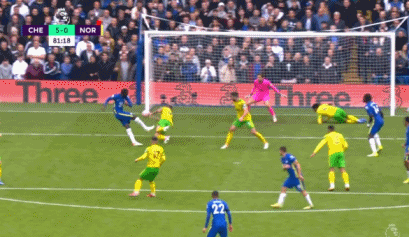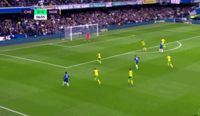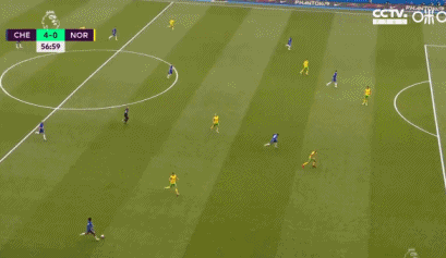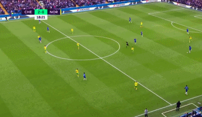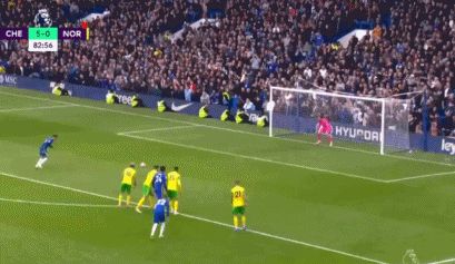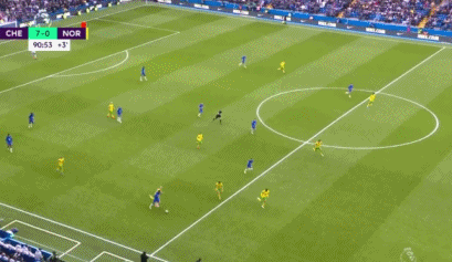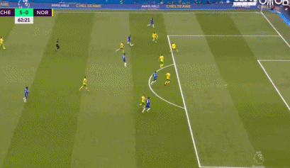 第63分钟,科瓦契奇分球给左侧奥多伊,奥多伊跟进传中,诺维奇的阿隆斯门前自摆乌龙,5-0。第65分钟,吉布森铲翻里斯-詹姆斯,领到第二张黄牌被罚下。第75分钟,齐耶赫禁区外左脚兜射弧线,稍偏出左门柱。第80分钟,科瓦契奇直塞,巴克利接球转身抽射被对方后卫挡出底线。切尔西右侧角球传中,齐耶赫禁区外右脚停球横拨一步换左脚抽射又被克鲁尔飞身扑出。