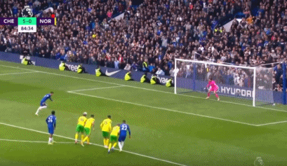第82分钟,吕迪格禁区里抽射被诺曼手臂挡下,裁判最初判给切尔西角球,在VAR回看后判给点球。芒特的点球被克鲁尔判断准确扑出,但克鲁尔被吹提前移动,点球重罚。第85分钟,芒特重罚点球命中,切尔西6-0。