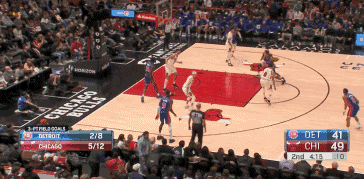 比赛进行到第二节,公牛队后卫郎佐-鲍尔正面单手血帽活塞队中锋斯图尔特,场面十分劲爆!在全场欢呼之中,球哥从界外慢慢走回禁区,面无表情继续防守。