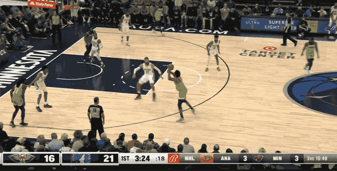 英格拉姆连拿4分开始第三节,唐斯和爱德华兹迅速回应,英格拉姆保持攻击性又得4分,他率队打出8-2的反击波,鹈鹕队以53-60落后。