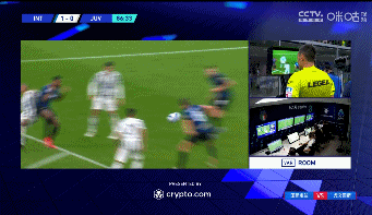 第86分钟,邓弗里斯在禁区内抬脚过高踢到了桑德罗,裁判看了VAR,给出了点球的判罚。第88分钟,国米主帅小因扎吉对于点球判罚不满口吐芬芳,最终被主裁红牌罚下。第89分钟,迪巴拉主罚点球,左脚推射左下角得分,尤文扳平比分1-1国米。全场比赛结束,尤文在客场1-1逼平国米。