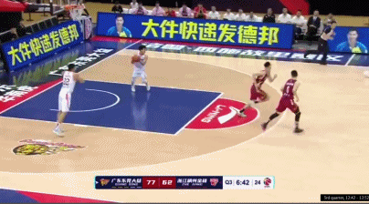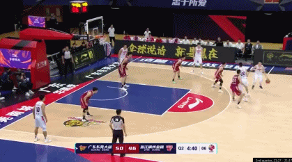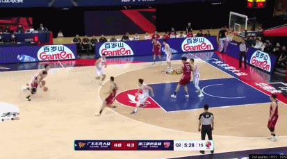 对阵浙江,悄悄摆脱余嘉豪的防守,从右侧底角接球溜进,拿下广东开场的第一个2分。