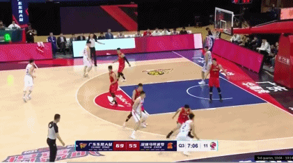 对阵深圳,从高位切入到内线油漆区,跟队友球到人到,晃飞沈梓捷,打个时间差。