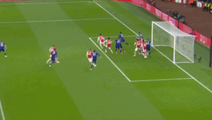 第55分钟,阿森纳角球引起门前混战,佩佩头球摆渡,钱伯斯头球冲顶被门将在门线内扑出,裁判判决进球有效,1-0,阿森纳主场比分领先,钱伯斯刚出场就进球。
