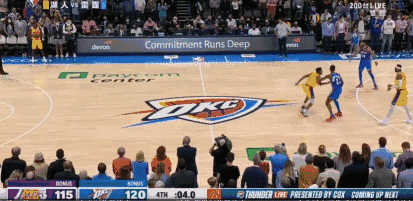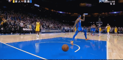 10月28日讯 湖人vs雷霆,在最后时刻比赛失去悬念的情况下,雷霆贝兹利抢断扣空篮。