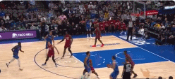 比如上面这次进攻,热火用巴特勒防东契奇,铁巴紧咬不放,东契奇利用两个掩护终于摆脱了巴特勒,却遭遇了阿德巴约,此时进攻时间已经耗去一大半,当东契奇终于借掩护找到邓肯罗的时候,热火采取夹击了,阿德巴约上来了,逼东契奇传了球。
