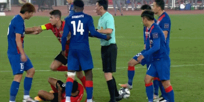 第89分钟,于汉超控球,上海海港小将阿布拉汗上前逼抢,此时于汉超伸开双臂死死卡住身后的阿布拉汗,而后者在身后是连拉带拽,最终双方均是倒在了地上。而后,于汉超很快起身,反倒是阿布拉汗趴在了地上迟迟不起来。