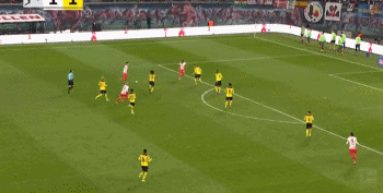第28分钟,莱比锡后场大脚长传,送出了一脚精彩的过顶长传,多特蒙德后卫盯人不紧,恩昆库拿球单刀杀入禁区,晃过了出击的科贝尔,随后一脚把球打进空门,1-0,莱比锡打破场上僵局,多特蒙德客场落后。在这次导致丢球的防守中,多特蒙德两个中卫出现了严重失误。凭借着恩昆库的精彩表现,莱比锡带着1-0的比分结束了上半场比赛,客场作战的多特蒙德场上比分落后。